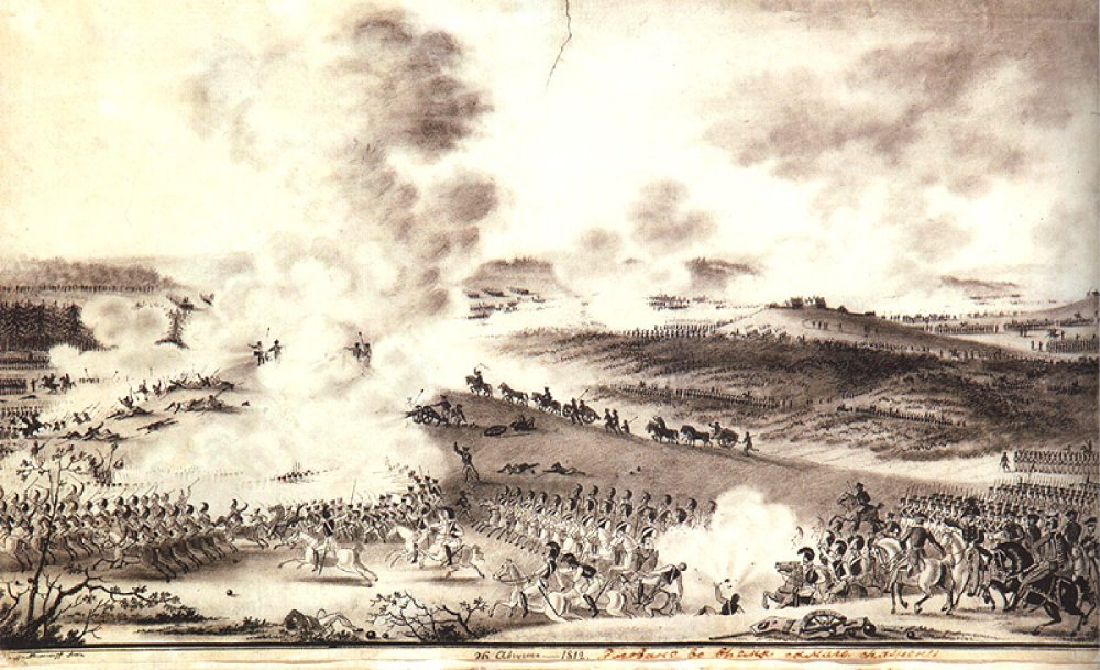 Бородинское сражение (во французской версии — «сражение на Москве-реке») — крупнейшее за всю войну 1812 года. Произошло оно в 125 километрах западнее Москвы и закончилось неопределенным для обеих сторон результатом.