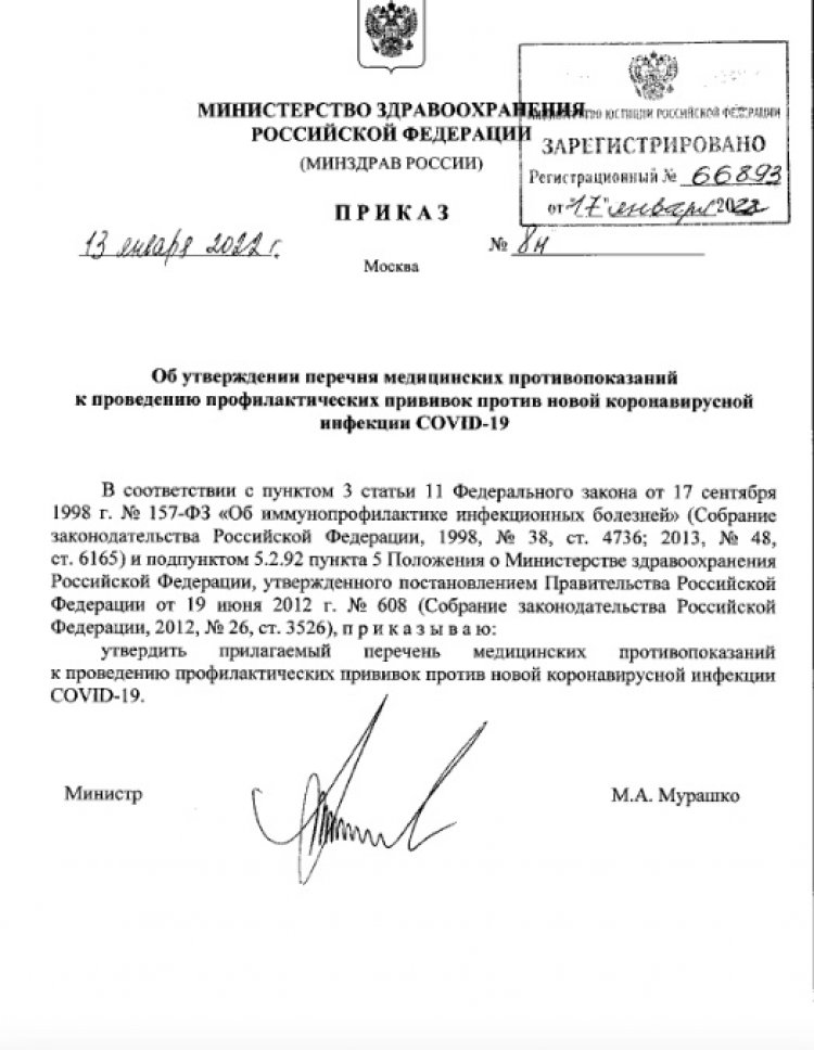 Минздрав опубликовал обновленный список противопоказаний к вакцинации от коронавируса