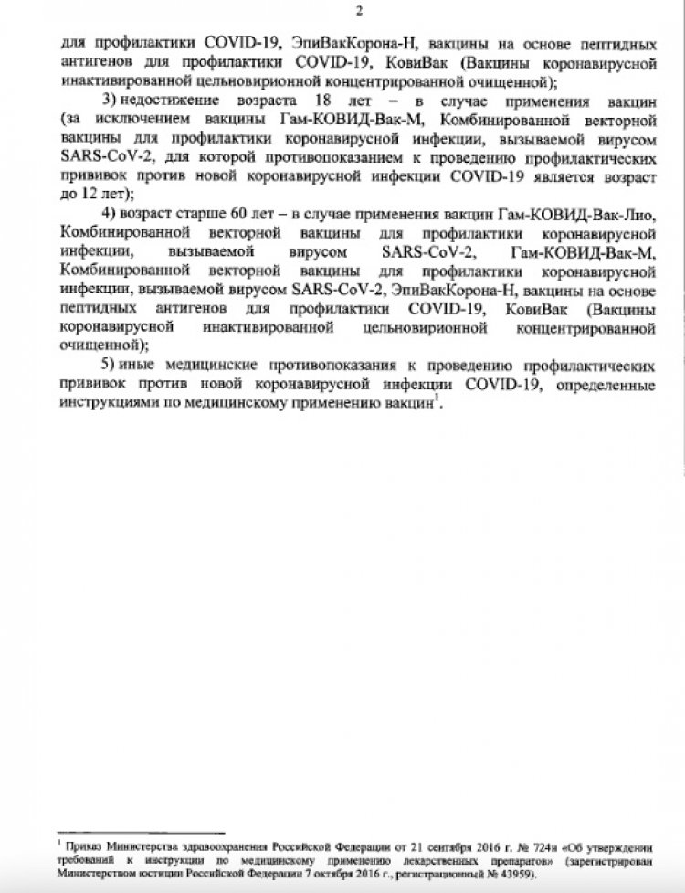 ➖ возраст старше 60 лет - в случае применения вакцин Гам-КОВИД-Вак-Лио, Комбинированной векторной вакцины для профилактики коронавирусной инфекции, вызываемой вирусом SARS-CoV-2, Гам-КОВИД-Вак-М, Комбинированной векторной вакцины для профилактики коронавирусной инфекции, вызываемой вирусом SARS-CoV-2, ЭпиВакКорона-Н, вакцины на основе пептидных антигенов для профилактики COVID-19, КовиВак (Вакцины коронавирусной инактивированной цельновирионной концентрированной очищенной);