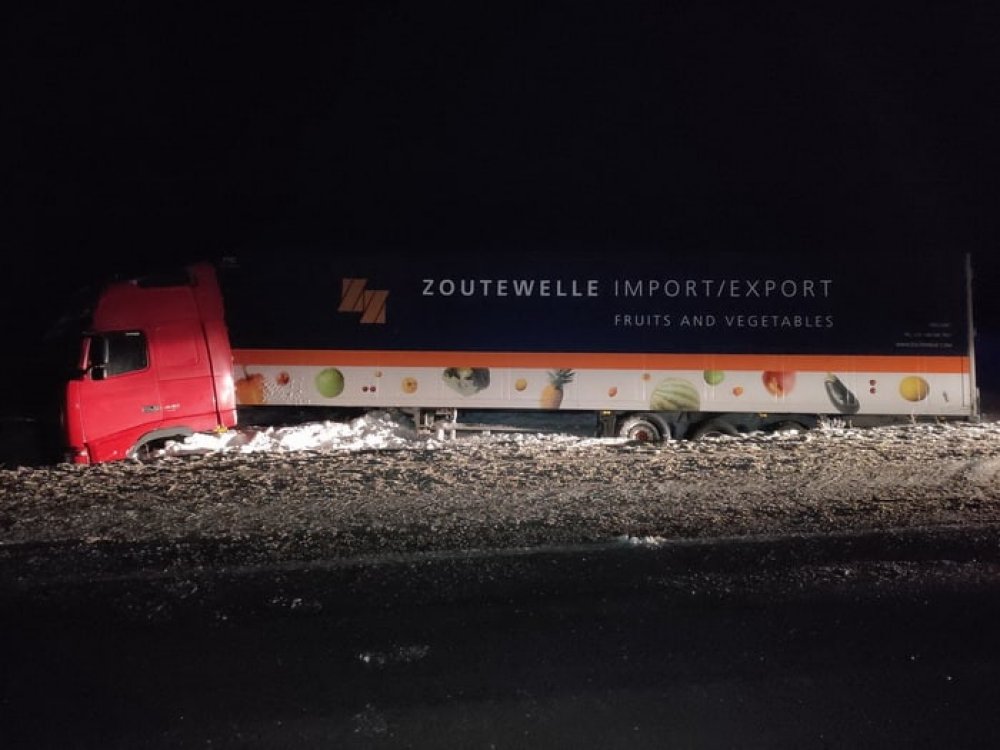 На 299-м км автодороги Уфа - Оренбург произошло ДТП — водитель автомобиля «Вольво» с полуприцепом не справился с управлением и съехал в кювет. Вытащить машину, застрявшую в снегу, самостоятельно не получилось, пришлось обращаться за помощью.