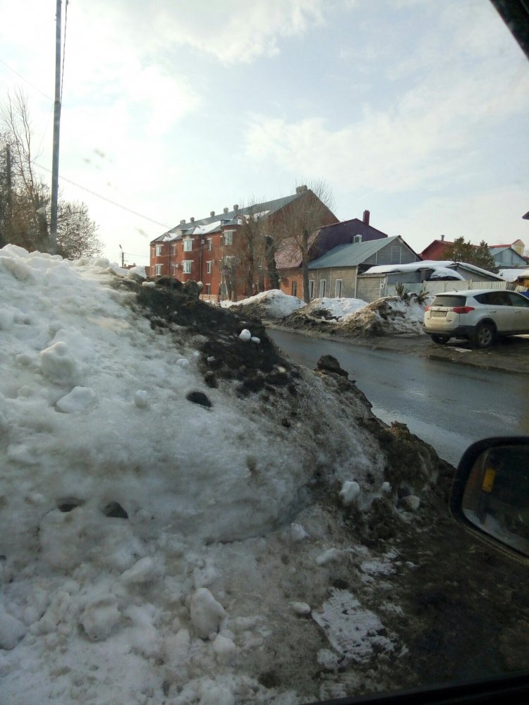 В то же время местные жители сообщают о сугробах на обочинах дорог. Например, на ул. Ташкентской снежные валы закрыли обзор для выезжающих на эту улицу.