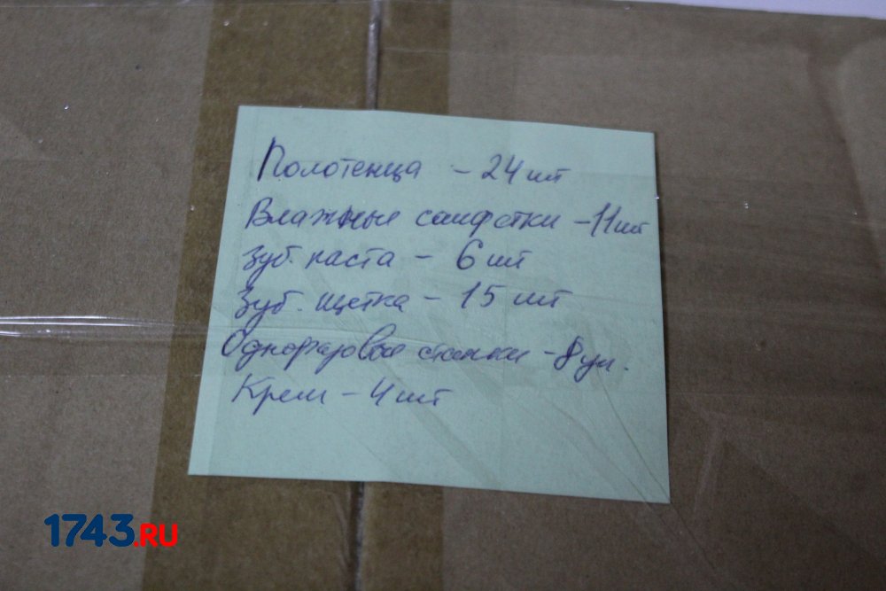 Также мы застали привоз коробок из школы №38 Оренбурга. Социальный педагог Фархана Асфандиярова рассказала, что родители и один из предпринимателей откликнулись на просьбу о помощи. Бизнесмен прислал вчера 24, а сегодня 36 полотенец и по 40 пар носков, майки, теплые комплекты.