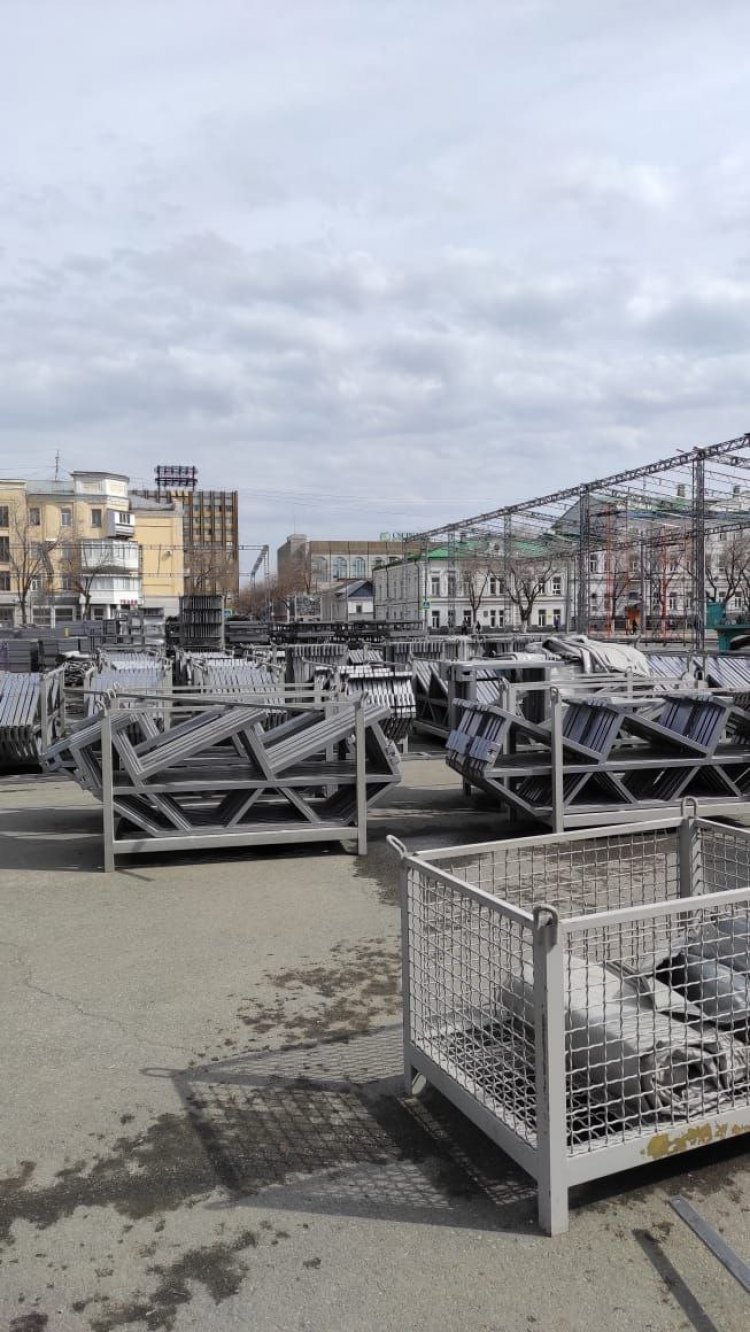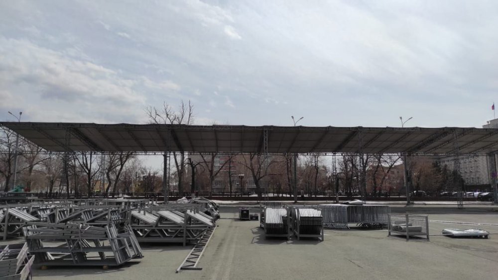 На площади им. Ленина продолжают монтировать трибуны, напомним, город готовится ко Дню Победы. К 9 Мая здесь появятся 3500 посадочных мест.