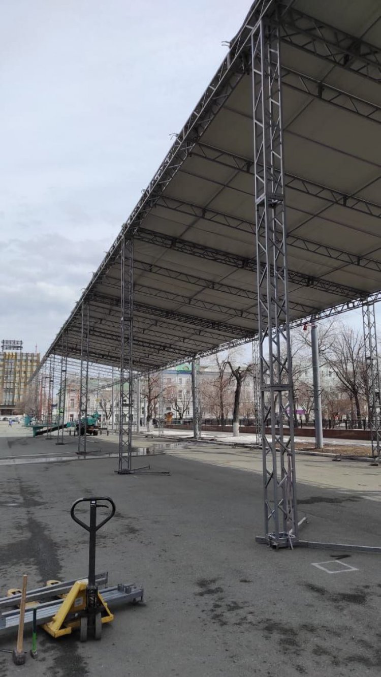 Ориентировочные сроки завершения монтажа — середина апреля. Финишем станет установка сценического комплекса и стены для баннерного оформления.