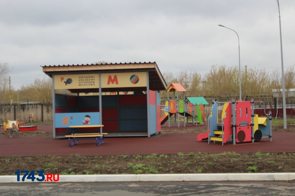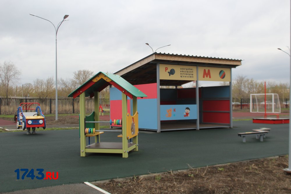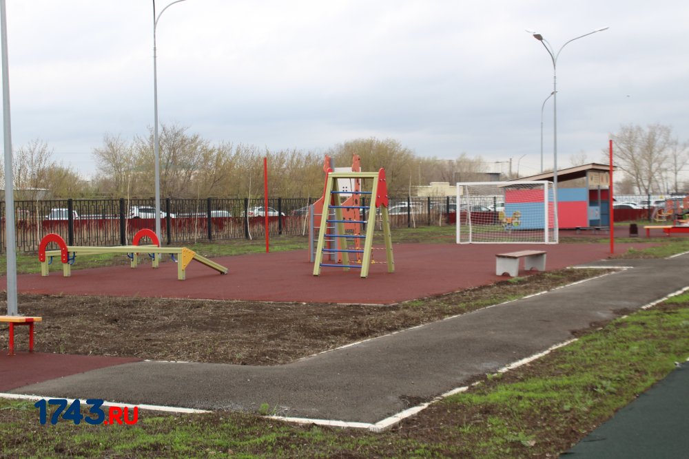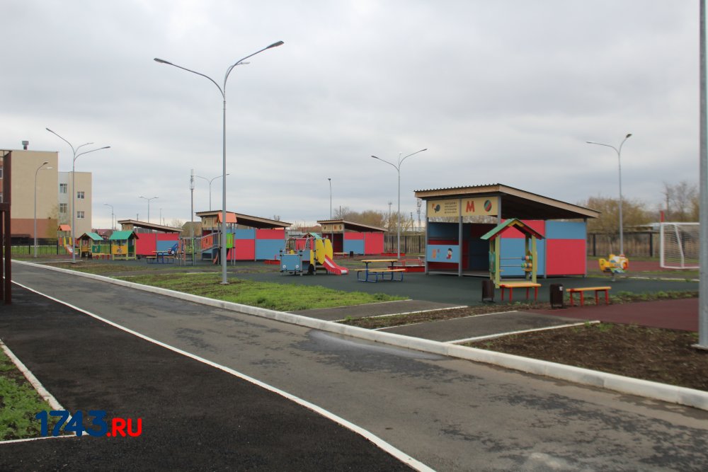 А для прогулок и игр на свежем воздухе на территории детсада построили физкультурную площадку со специальным прорезиненным покрытием, различные турники, горки и прочие МАФы, а украсит все в будущем почти аллея деревьев.
