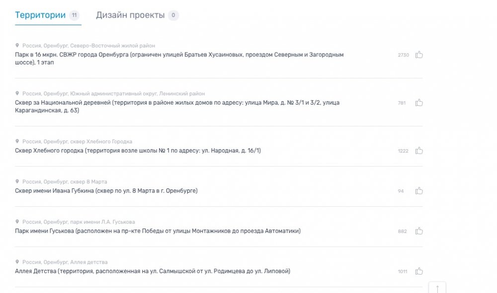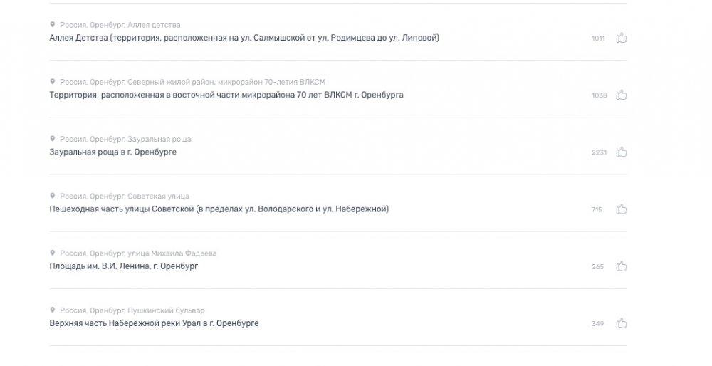 За первую неделю голосования в рамках федерального проекта «Формирование комфортной городской среды» в Оренбурге определились 2 лидера: