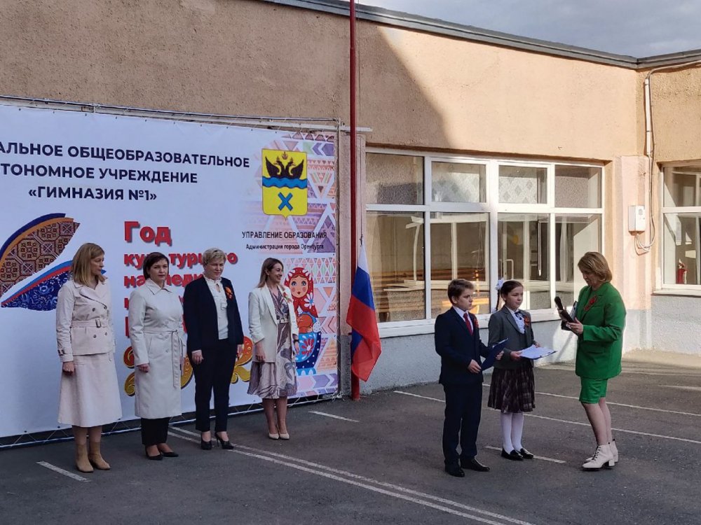 В Оренбурге стартовала Всероссийская акция «Георгиевская ленточка». Так, торжественная церемония прошла в гимназии №1. Линейка началась с церемонии поднятия российского флага. Это право предоставили учащимся, отличившимся в учебе и общественной жизни образовательного учреждения — Аделине Кульчаровой, Семену Головину, Ульяне Писарчик и Илье Сазонову.