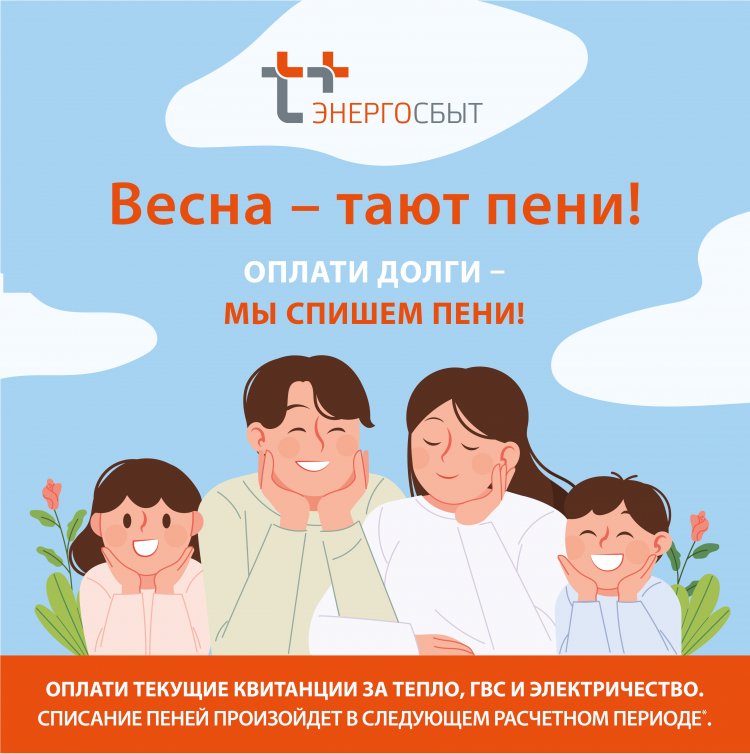 Оренбургский филиал «ЭнергосбыТ Плюс» продолжает акцию «Весна – тают пени». Избавиться от штрафных начислений могут клиенты компании – физические лица, полностью оплатившие свои долги за электричество, тепло и горячую воду до 30 июня*.