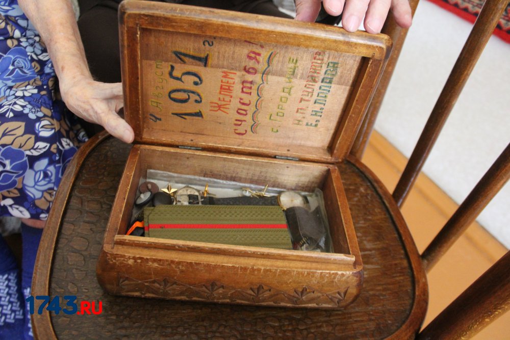 В честь свадьбы директор школы и коллектив подарили шкатулку молодоженам, которую те хранят до сих пор. Так как это было тяжелое послевоенное время, то в подарках были носки, платочки, чулки, кастрюли. Нелегко пришлось молодоженам и после.