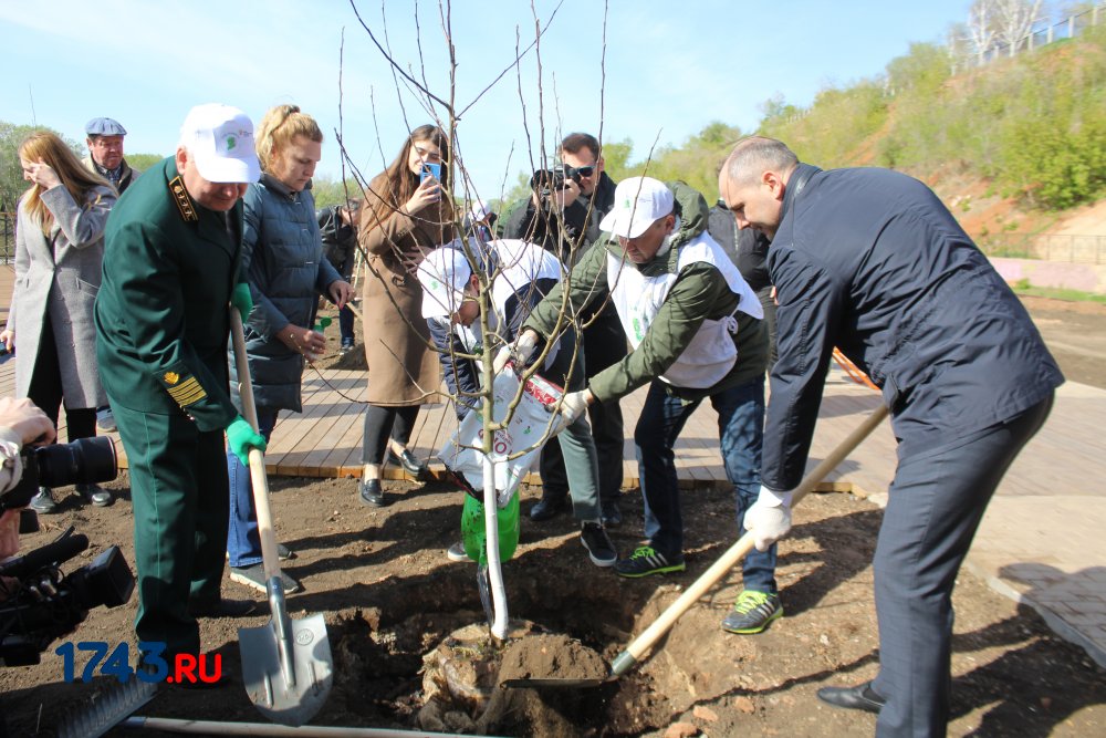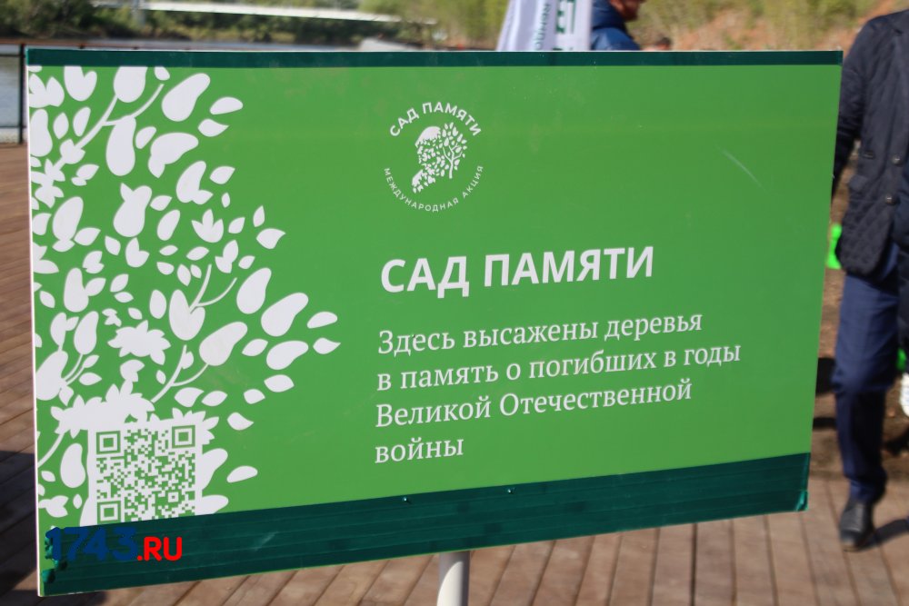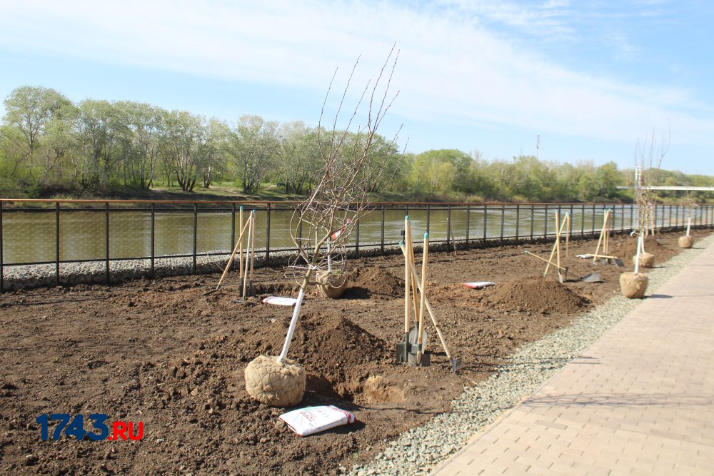 На восточной набережной Урала прошла акция «Сад памяти», в рамках которой в открытый грунт было высажено 16 яблонь. Данное мероприятие проходит по всей России и призвано почтить память каждого погибшего в годы Великой Отечественной войны. Поэтому всего в России должны посадить 27 миллионов деревьев в память о 27 миллионах жертвах.