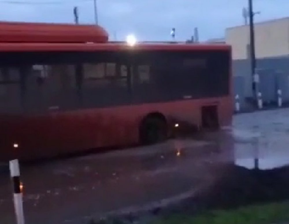 В Оренбурге на ул. Невельской автобус застрял в яме