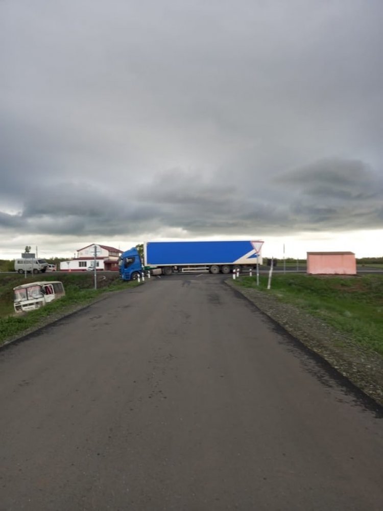 На трассе Казань-Оренбург-Акбулак большегруз столкнулся с автобусом