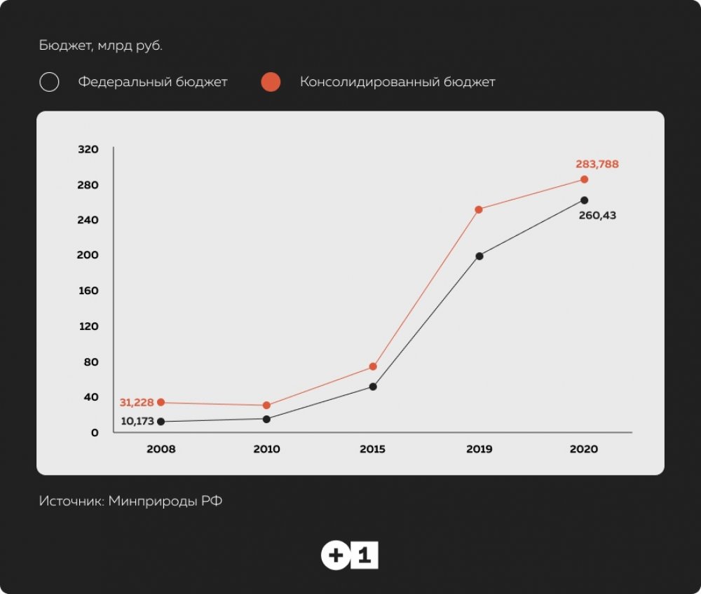 Расходы государства на охрану окружающей среды на два порядка скромнее доходов от природопользования. Впрочем, с 2008-го по 2020-й они увеличились почти в 10 раз.