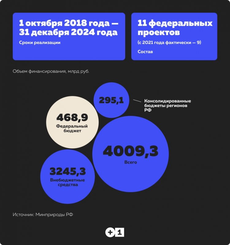 В июне 2020 года бюджет нацпроекта «Экология» сократился на 23 млрд руб. — правительство перенаправило их в Резервный фонд в связи с пандемией. В сентябре стало известно, что расходы сократят еще на 52,3 млрд руб.: в 2021-м «Экологию» урежут на 18,9 млрд руб. (14,9%), в 2022-м — на 21,8 млрд руб. (14,2%), в 2023-м — на 11,6 млрд руб. (7,6%).