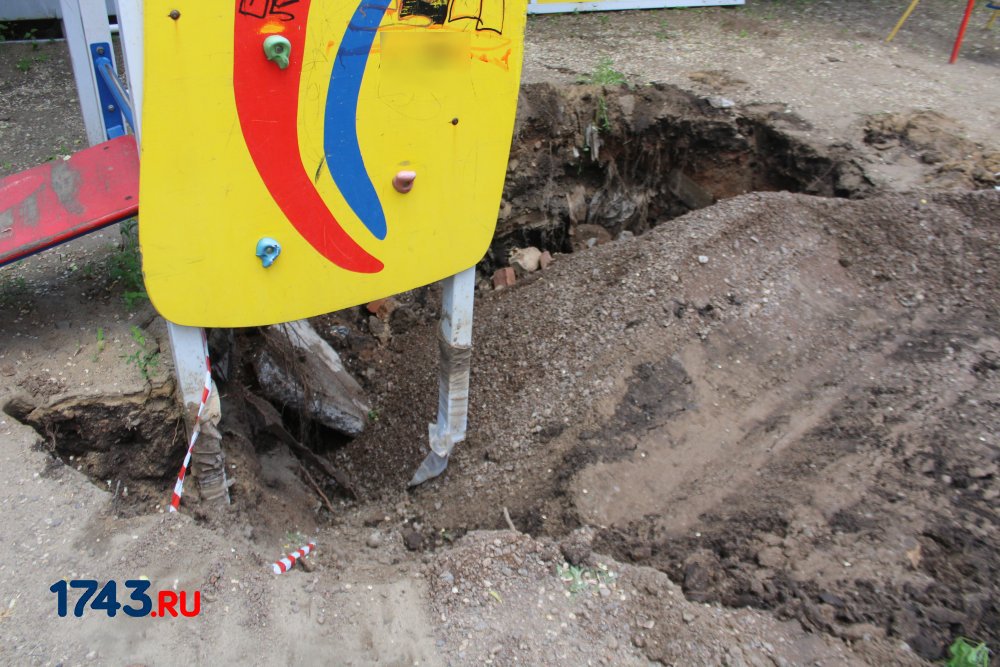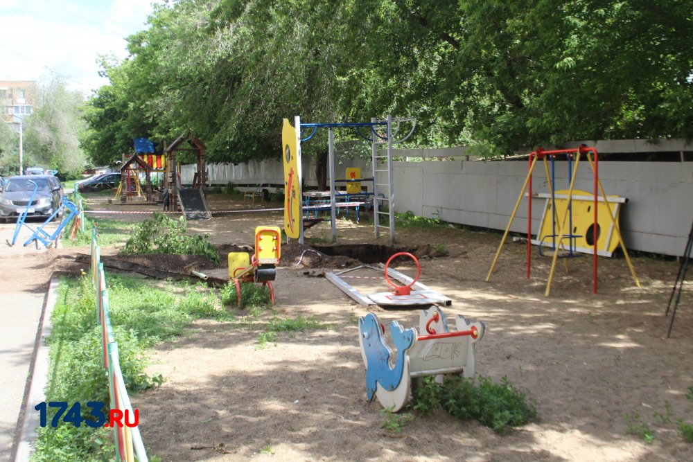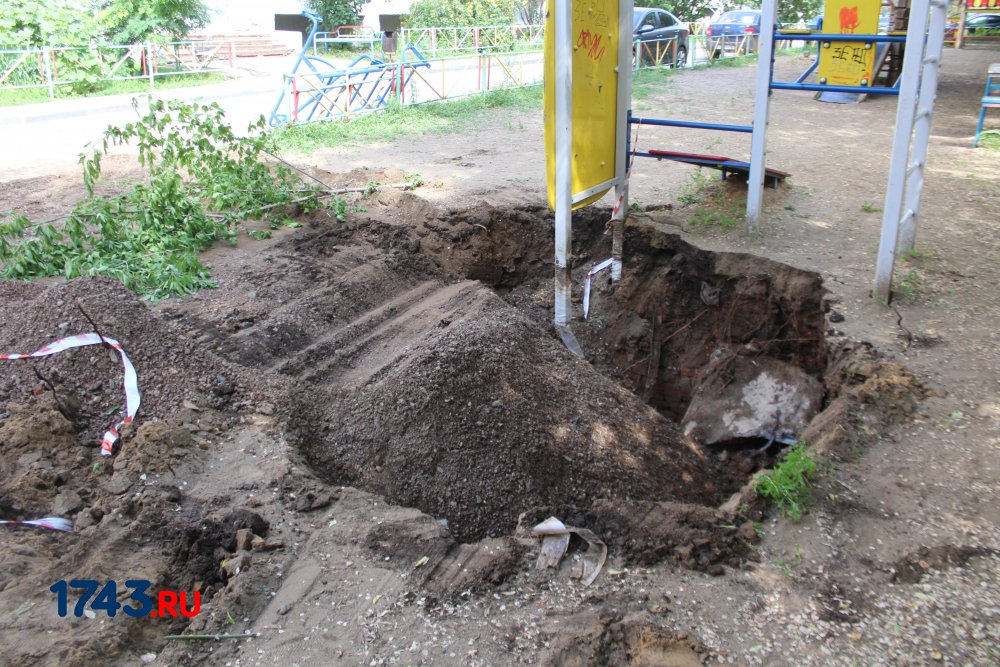 Но в это воскресенье местная жительница, снимая ребенка с горки, ногой провалилась под землю. Когда об этом узнали остальные жильцы, то в первую очередь обратились в управляющую компанию. По словам старшей по дому Ирины Чаплыгиной, людям посоветовали взять лопаты и самостоятельно закопать яму. После того, как провал разросся, горожане обратились за помощью в мэрию и сами огородили лентой опасный участок.