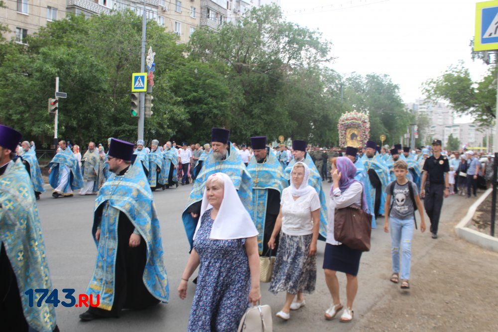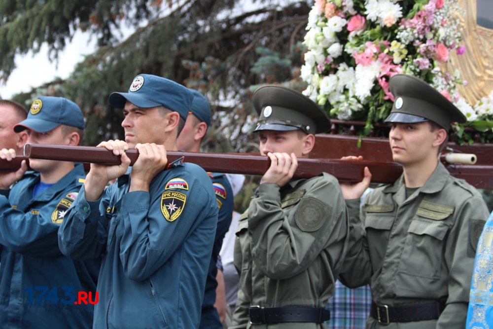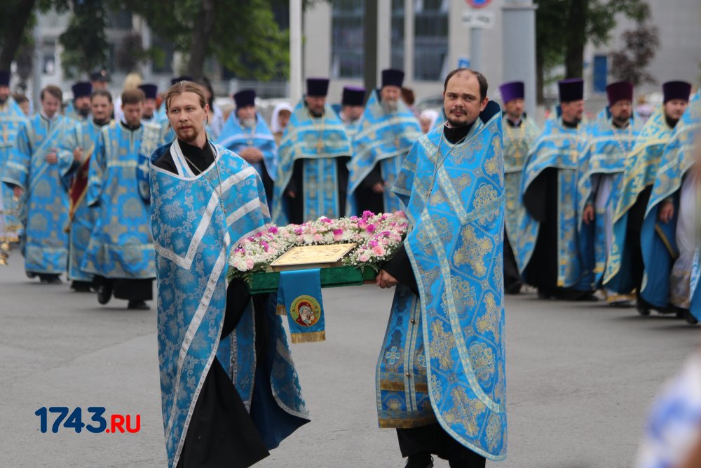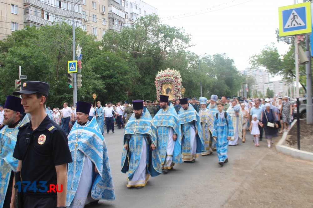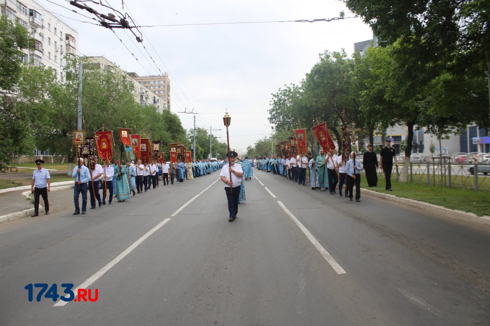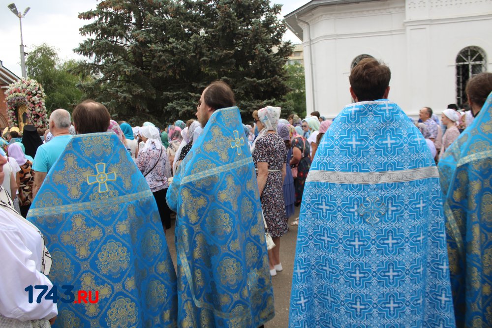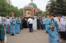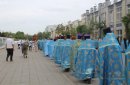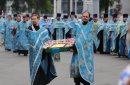 После молитв православные верующие единым потоком последовали за процессией по улицам города. В первых рядах несли хоругви, а далее священный лик. От Никольского кафедрального собора на улице Чкалова до Поклонного креста в сквере у Дома Советов и обратно верующие молились и воспевали праздник.