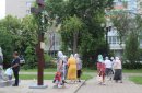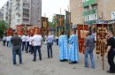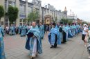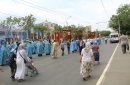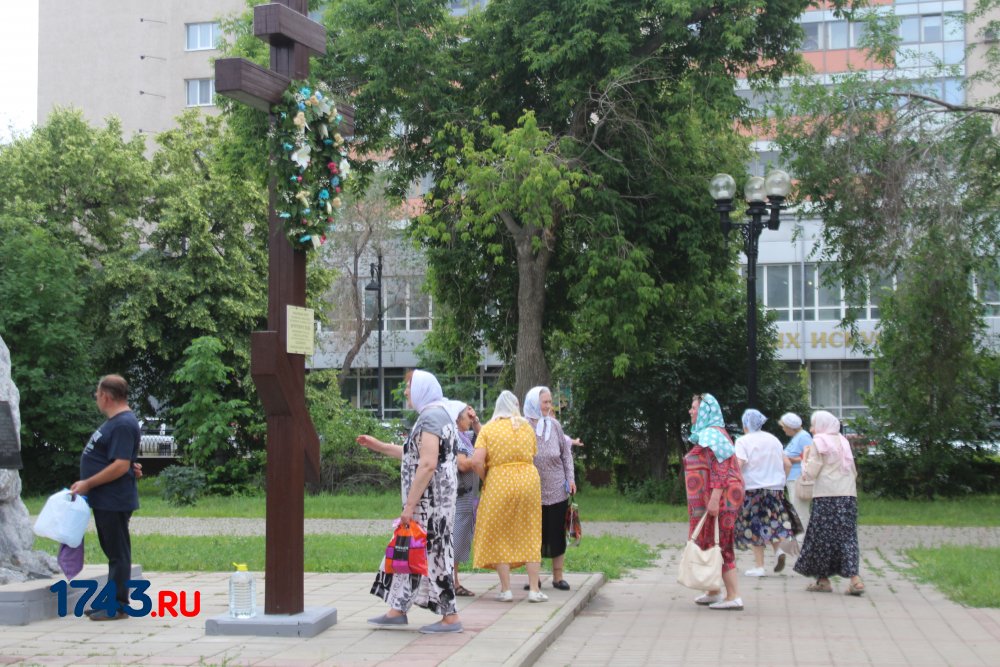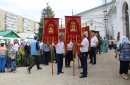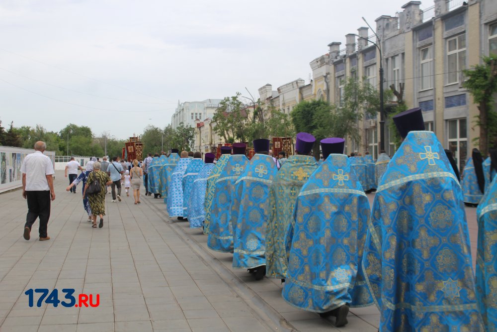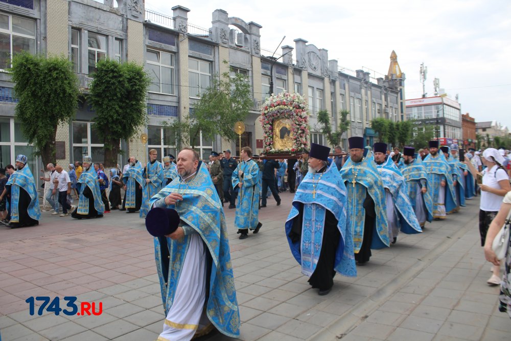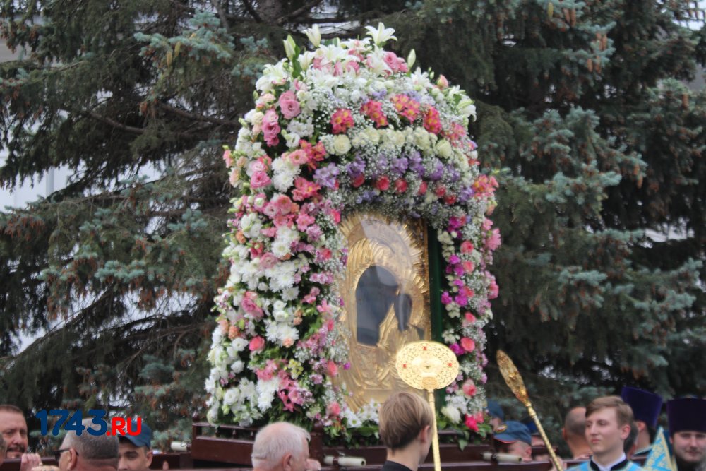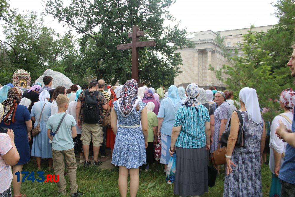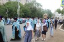 После молитв православные верующие единым потоком последовали за процессией по улицам города. В первых рядах несли хоругви, а далее священный лик. От Никольского кафедрального собора на улице Чкалова до Поклонного креста в сквере у Дома Советов и обратно верующие молились и воспевали праздник.