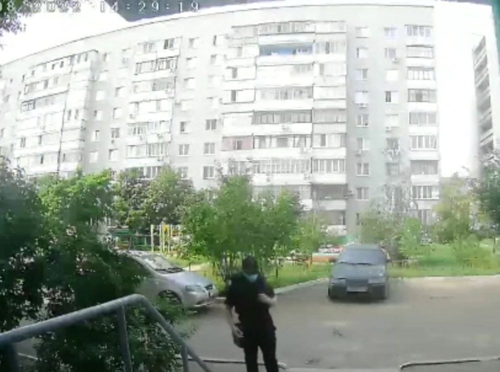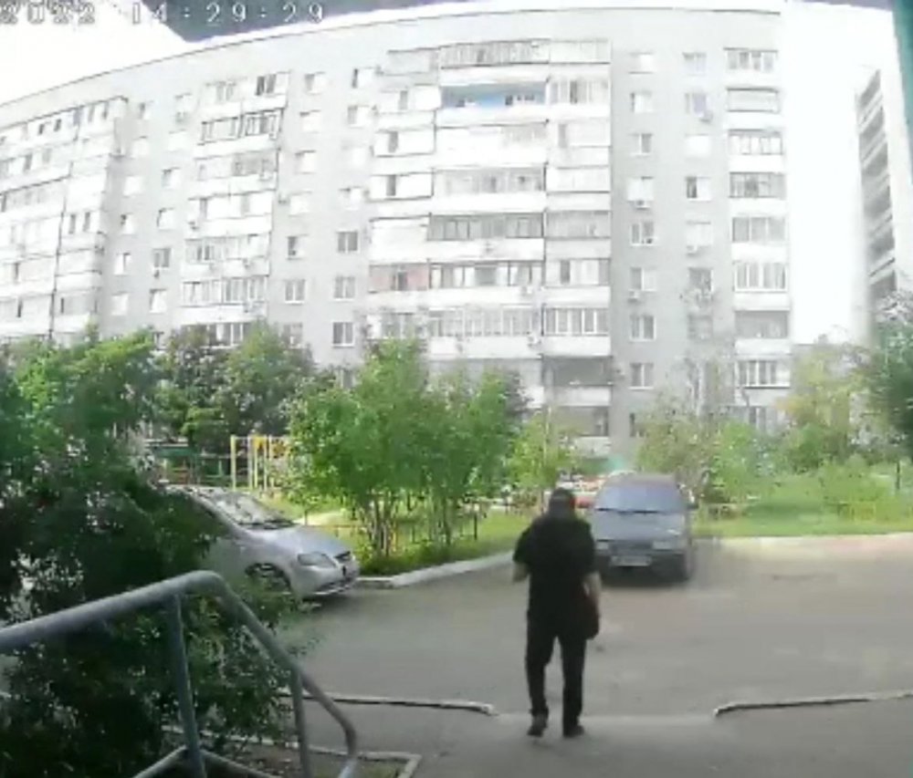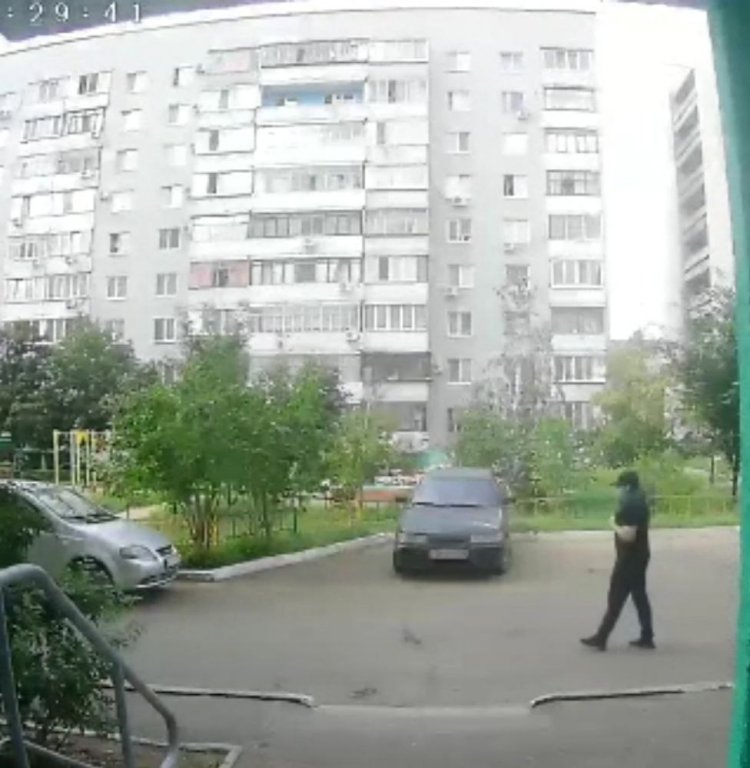 Наши коллеги из UTV пишут, что это мужчина среднего телосложения. Он был одет во все черное: куртку, штаны, кепку и футболку. На его лице была медицинская маска или шарф, а также солнцезащитные очки.