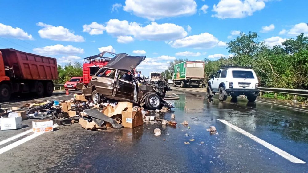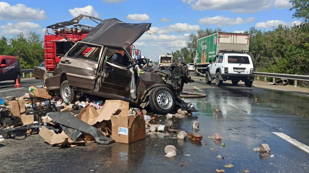 Машина всмятку: в Оренбурге лоб в лоб столкнулись ВАЗ и «Исузу»
