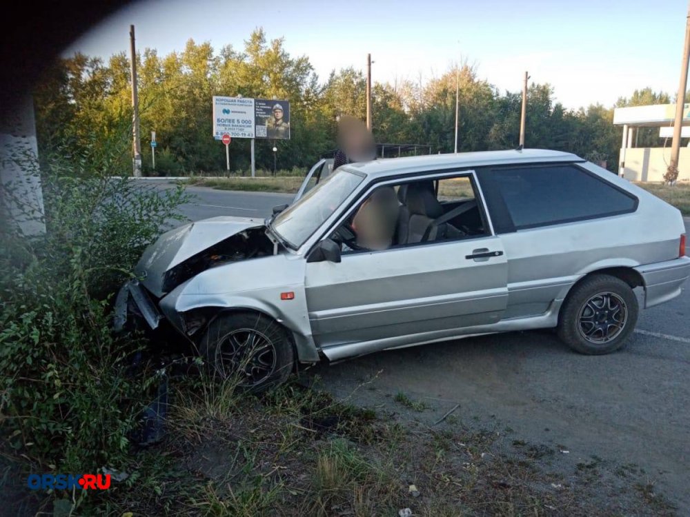 В Орске на Нижней дороге водитель ВАЗ 2113 не справился с управлением и въехал в столб