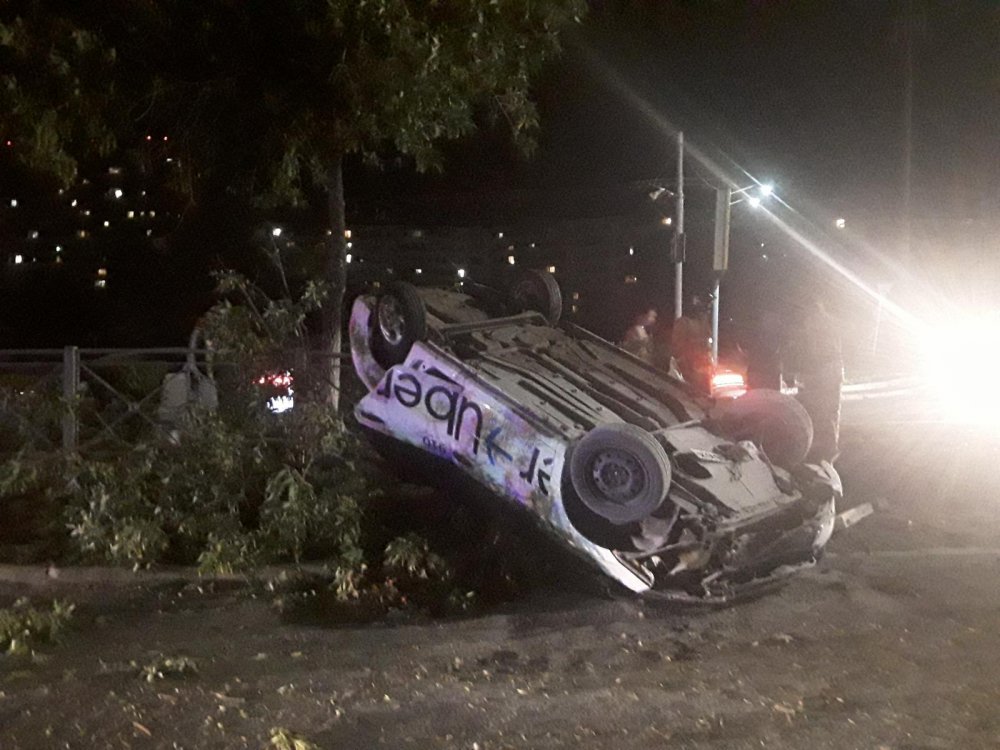 На проспекте Гагарина в Оренбурге перевернулось такси