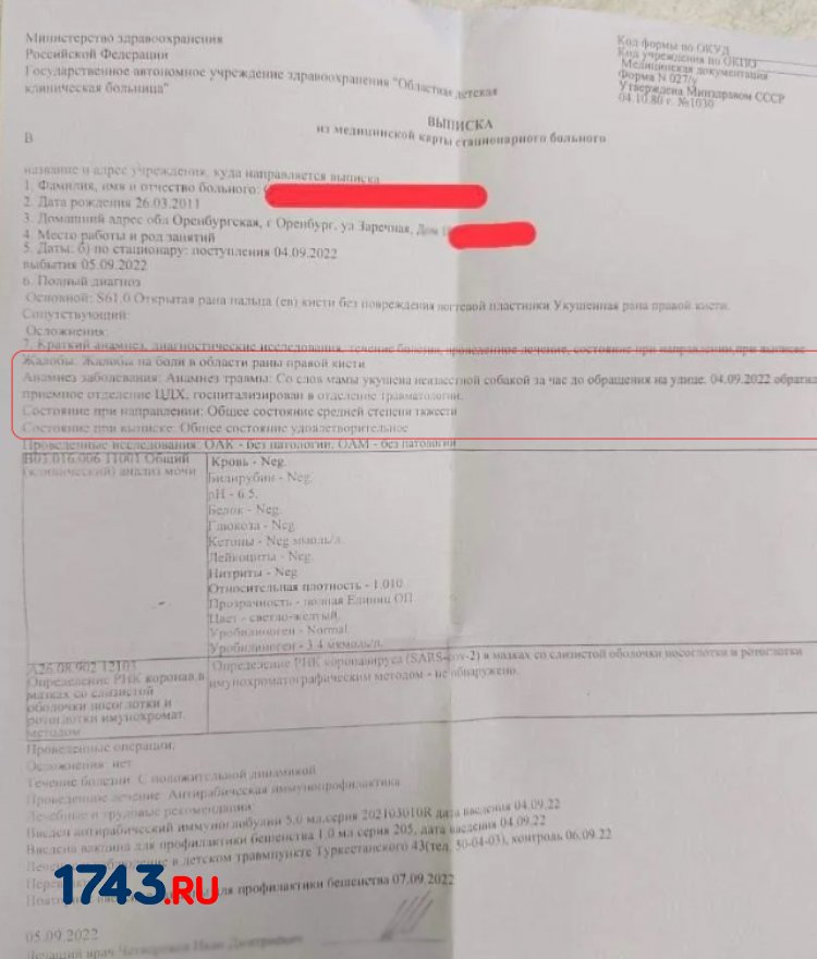 По словам ее матери, у входа в торговую точку часто находятся бездомные животные, и тот день не стал исключением. Подросток выходила из магазина, когда случайно дверью задела стоящую собаку. Если раньше все обходилось рычанием, то теперь агрессивное животное укусило за руку юную горожанку - зубы вонзились в основания пальцев.