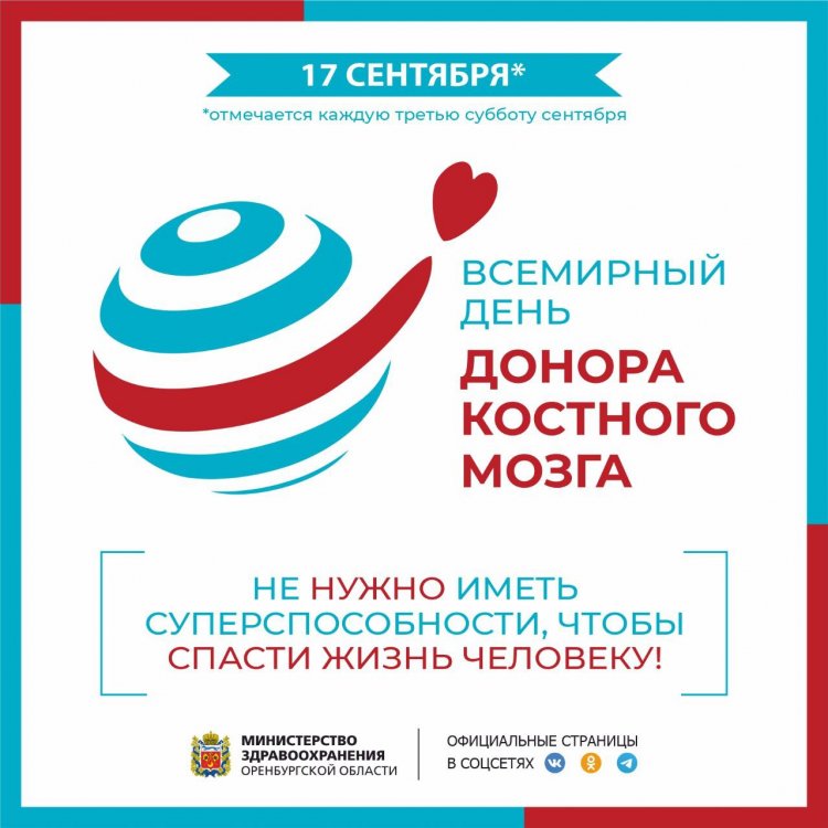 Сегодня отмечается Всемирный День донора костного мозга. Ежегодно в России у тысячи людей диагностируют злокачественные заболевания крови при которых страдает костный мозг. 1/5 часть из них нуждается в пересадке костного мозга. Трансплантация клеток костного мозга от неродственного донора — один из эффективных методов лечения злокачественных заболеваний крови и тяжёлых состояний, вызванных угнетением костного мозга.