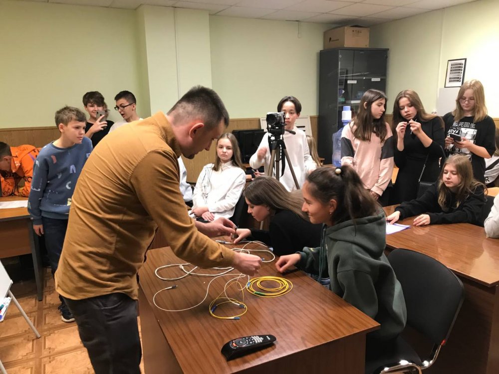 Сотрудники «Ростелекома» рассказали ребятам и учителям о том, как интернет приходит в дома: объяснили принцип передачи данных по оптоволокну, показали, как сваривают кабель и обжимают витую пару. Кульминацией стала презентация книги по кибербезопасности.