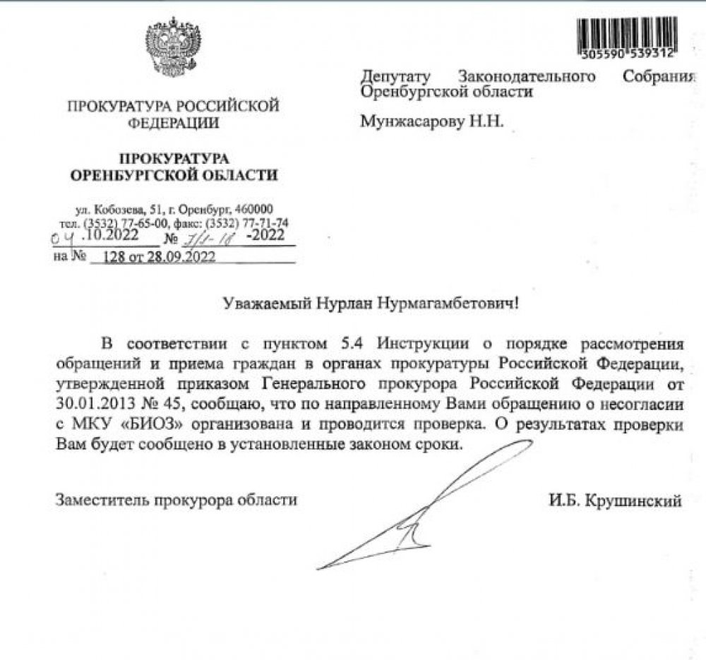 Законность действий оренбургского МКУ «БиОЗ» проверит прокуратура Оренбурга. Депутат Законодательного Собрания Оренбуржья Нурлан Мунжасаров по просьбе жителей ул. Луганской написал обращение в надзорное ведомство.