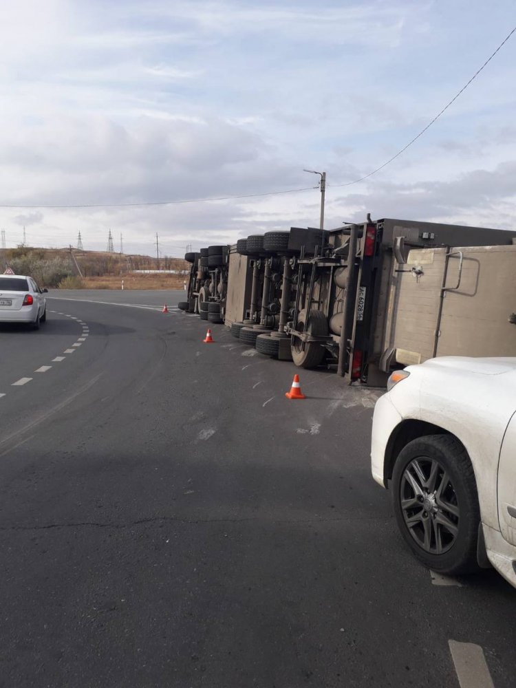 Фура со свиньями перевернулась на Новотроицкое шоссе в Орске