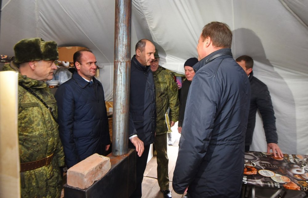 Всего три недели понадобилось на строительство места слаживания призывников. Организовали его на базе полигона 106 учебного центра войсковой ПВО Сухопутных войск Центрального военного округа (войсковая часть 33860), а курировал работы лично губернатор. Поэтому Денис Паслер и Игорь Комаров решили лично проверить условия жизни мобилизованных. Осмотр показал, что палатки отапливаются, военнослужащих кормят три раза в день, в том числе есть горячее питание.
