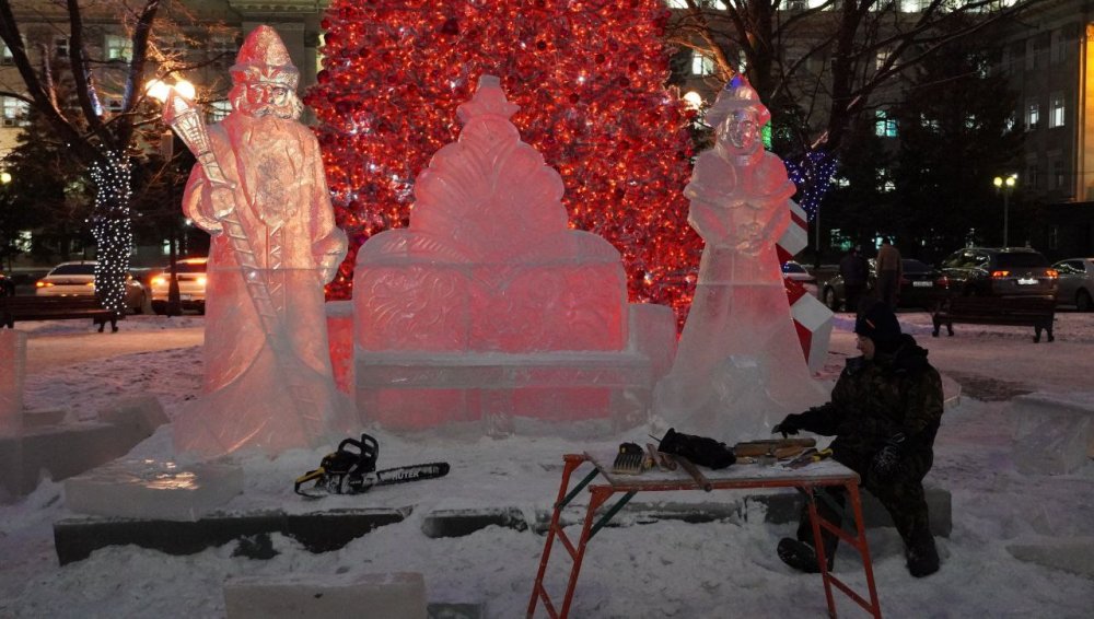 Сегодня в 17:00 в Оренбурге официально откроется новогодний городок. Сейчас там проводят финальные работы - монтаж конструкций, пилка льда и уборка. С ноября на площади Ленина работали больше ста человек. Там уже готово «Звездное небо», горка и каток, домики Маркета еды, собираются 54 елки. В сквере у Дома Советов гостей встретят светящиеся фигуры, качели, ледяные фигуры, горки и лабиринты. Главным украшением станет елка, которая днем будет серебристо-белая, а ночью засверкает красными огнями. А перед ней стоят ледяные Дед Мороз и Снегурочка.