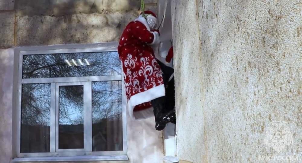 Дед Мороз спустился прямо с крыши к окнам маленьких пациентов больницы Оренбурга