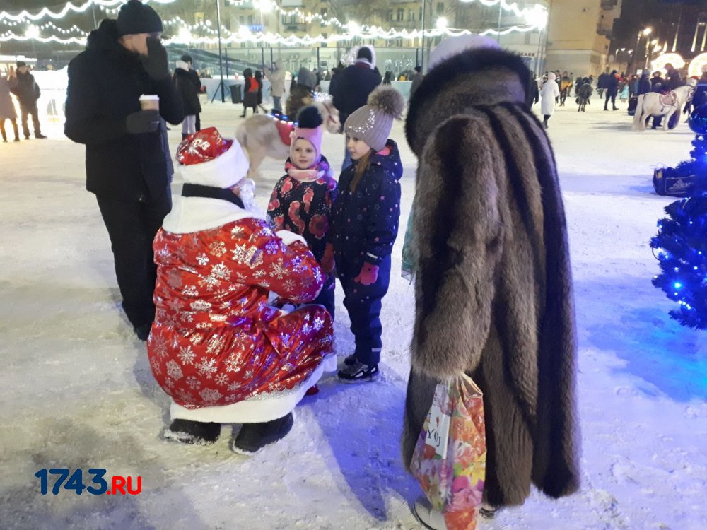 Житель Оренбурга переоделся в Деда Мороза и раздавал конфеты ребятам