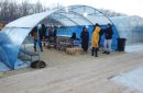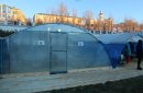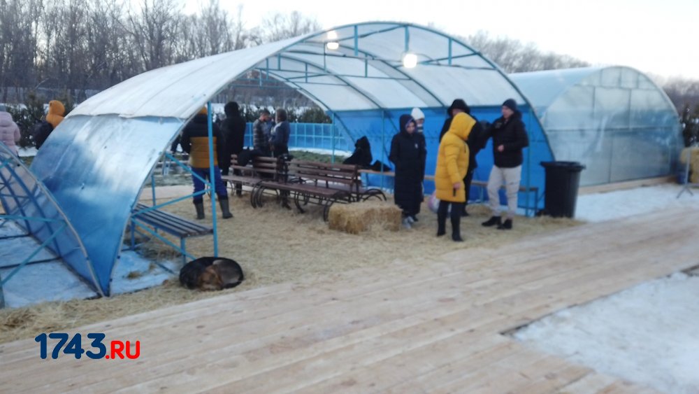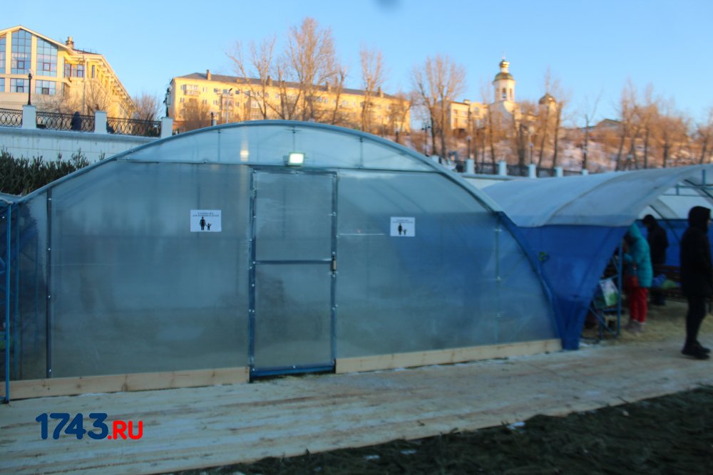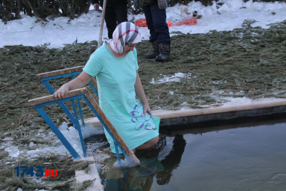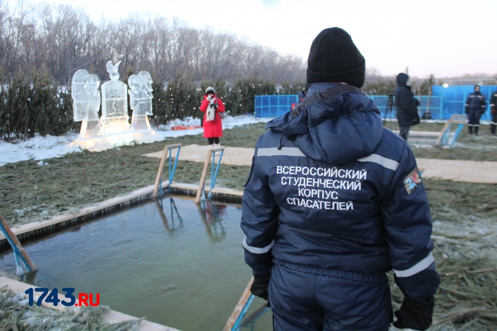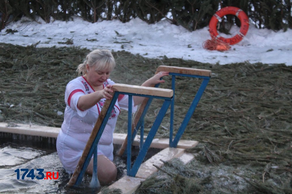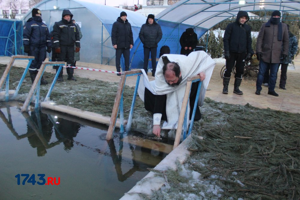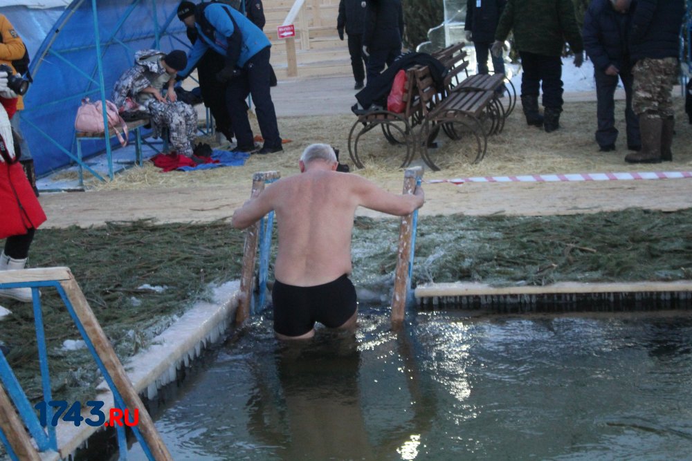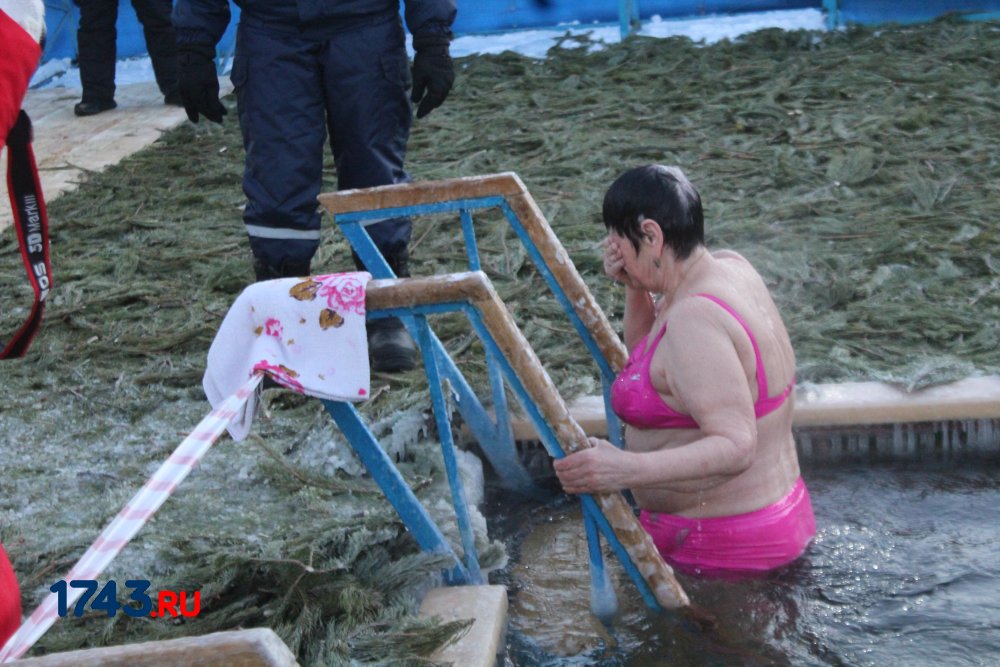 В Оренбурге прорубь вырубили на Урале напротив здания Следкома, на дне установили настилы и лестницы. Рядом поставили обогреваемое крытое помещение для детей и женщин, но сегодня оно не пользовалось популярностью. Люди по старинке быстро переодевались на улице на лавочках под навесом.
