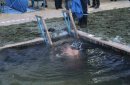 По традиции священник освятил проруби и напомнил, что купание не освобождает от грехов.
