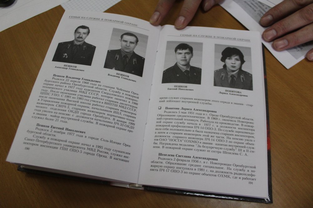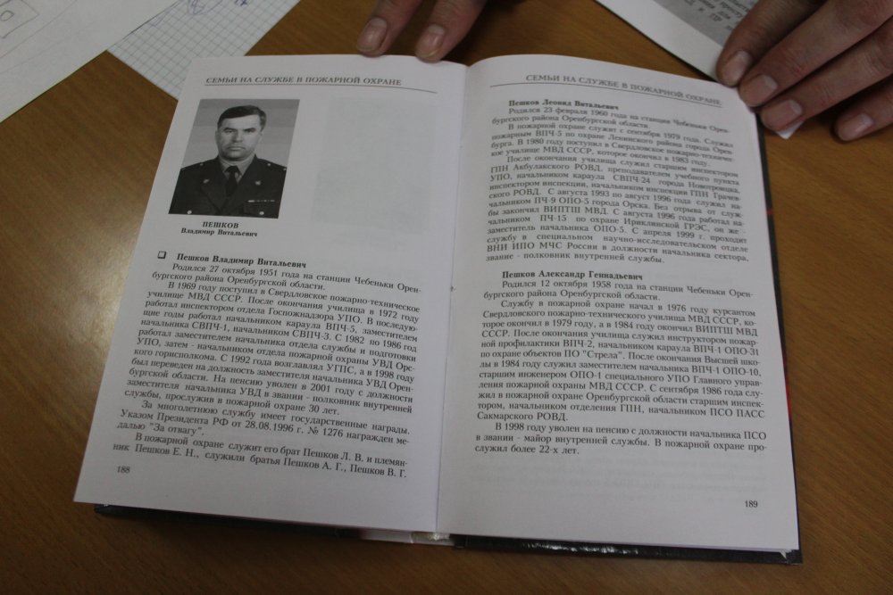 — Самым первым в пожарной охране был старший брат отца - Владимир Витальевич Пешков. Он выбрал Свердловское пожарно-техническое училище МВД СССР (1969 году). Мне отец рассказывал, что дядя много читал, был грамотным. В 1972 году он окончил училище. Занимал руководящие должности и возглавлял пожарную охрану Оренбуржья. Потом по его стопам пошли братья, сестры, дети.