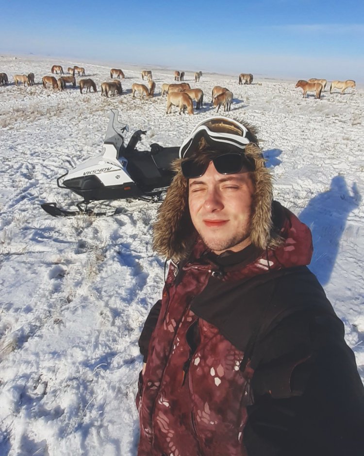 — В ночь с 15 на 16 января (2023 года) я проснулся от жутких звуков. Степь, заповедник, ночь, штиль, мороз и за окном неимоверный грохот. Так быть не должно. Выглядываю в окно и вижу, как огромный гарем Регнума и Сандро (33 лошади) окружили кордон и занялись исследованиями: кто бьёт копытом по отливу, кто грызет снегоход, кто чешется об метеостанцию. Поэтому гостям заповедника (неподготовленным людям) мы настойчиво рекомендуем ночью спать и не смотреть в окна, потому что там можно увидеть эти великолепные в своей красоте и редкости мохнатые лошадиные лица. Но это надо быть очень везучим человеком.