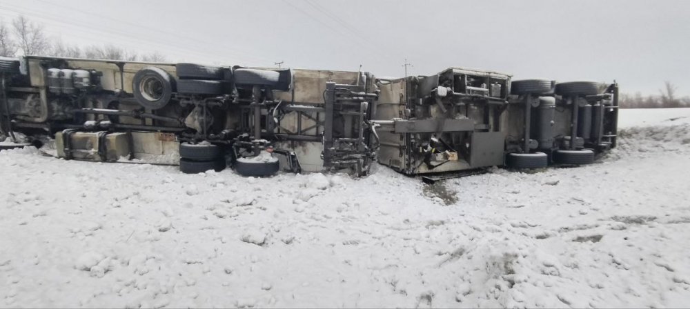 В Новосергиевском районе на 307 км автодороги Самара-Оренбург произошло ДТП. По предварительным данным, водитель автомобиля «МАН» не учел дорожные и метеорологические условия, из-за чего не справился с управлением и съехал в кювет. Машина перевернулась, но никто не пострадал.