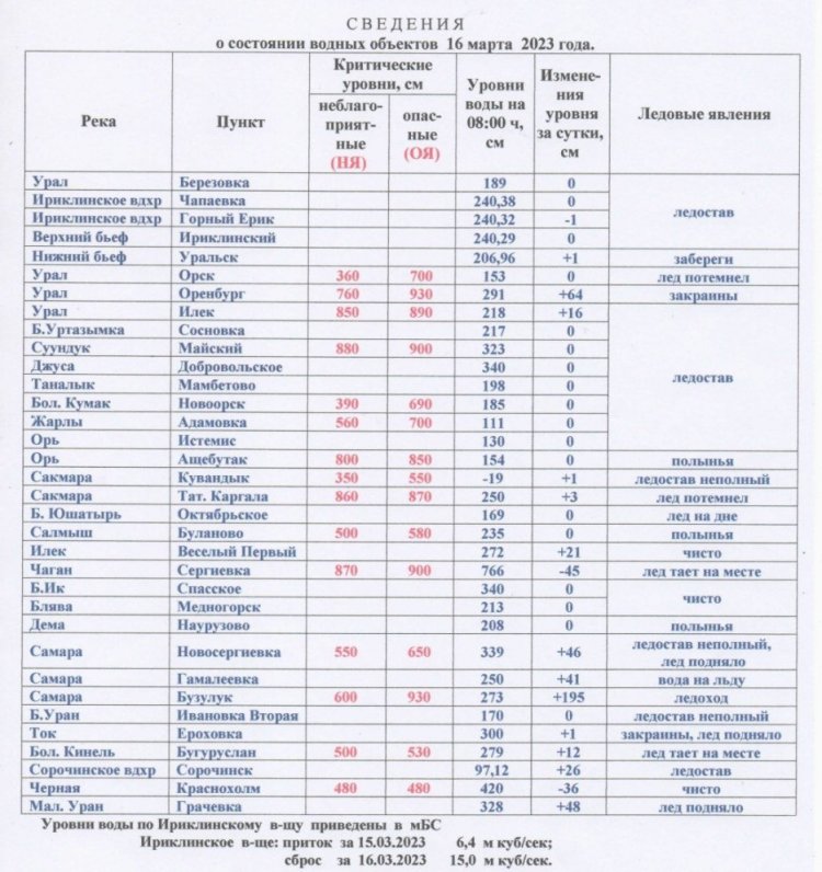 Приток в Ириклинское водохранилище за 15 марта составлял 6,4 кубических метров в секунду. Сброс на 16 марта – 15 куб.метров в секунду.