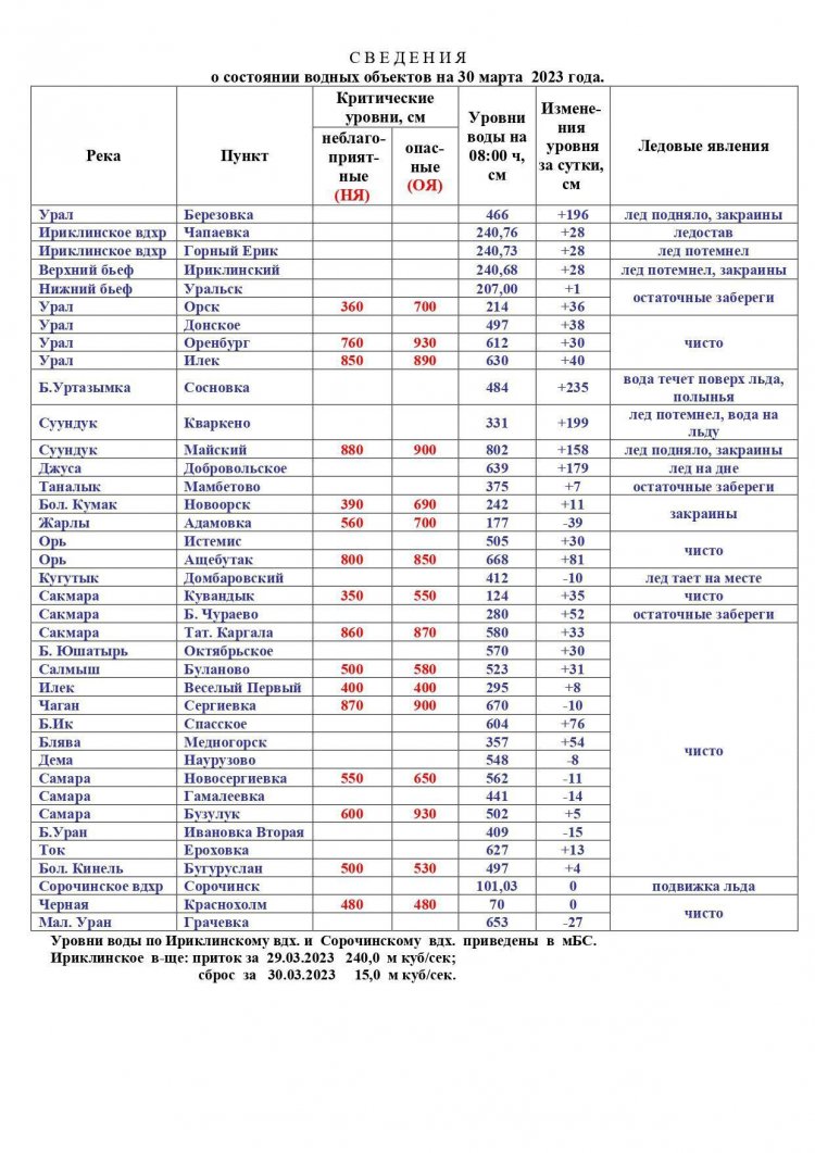 Уровень реки Сакмара у Татарской Каргалы за сутки вырос на 33 см. Сейчас показатель остановился на отметке 580 см.
