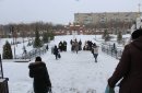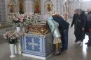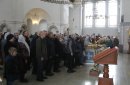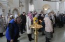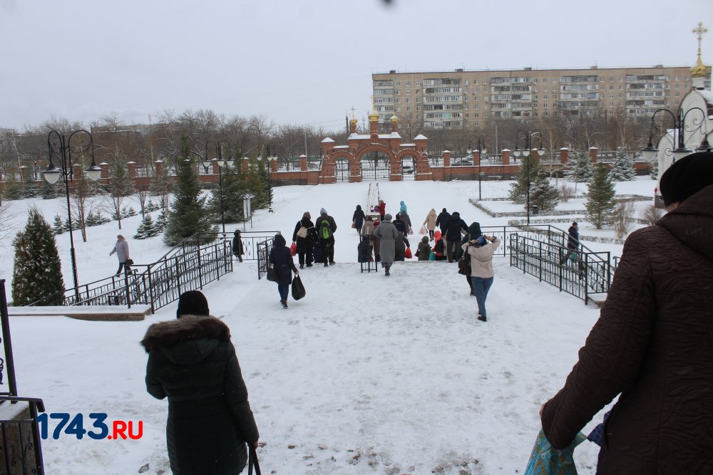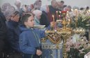 Отметим, что в самом соборе в этом году освящение проводят внутри храма, так как в городе снежная весна - с утра идет снег, а периодически из-за сильного ветра люди попадают в буран.