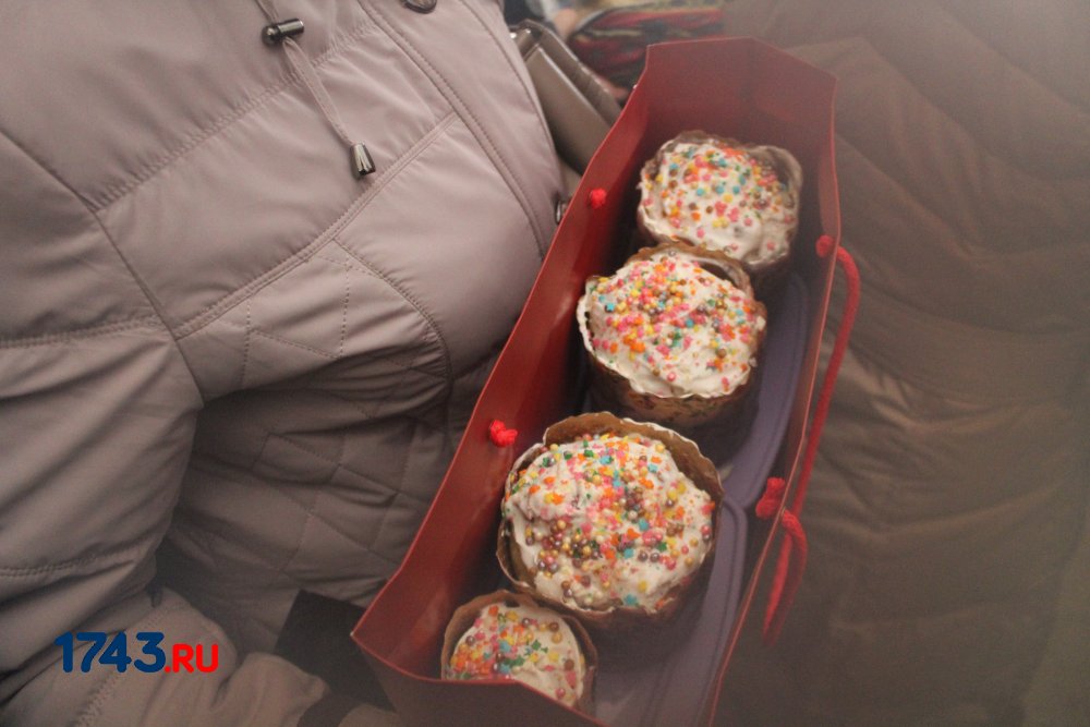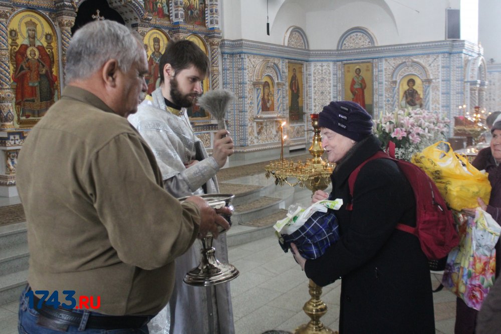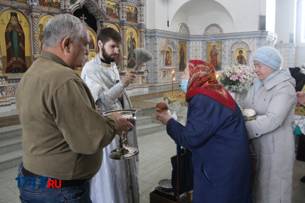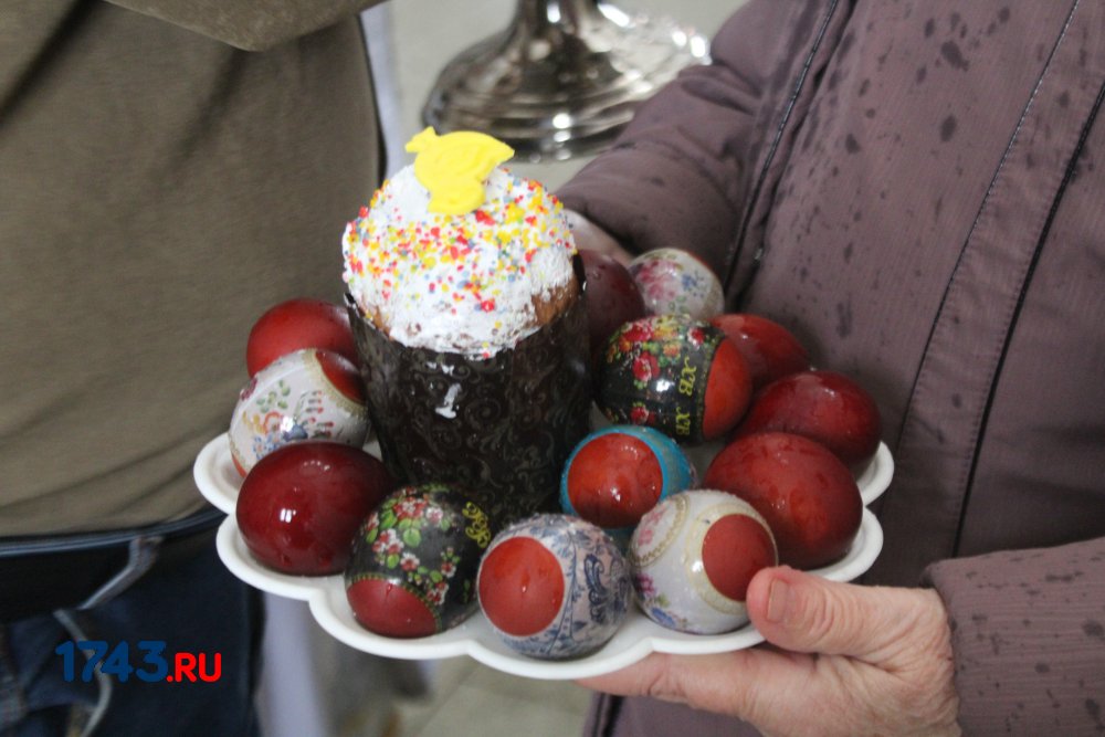 В Соборе Казанской иконы Божией Матери десятки горожан подходили к священнослужителю, чтобы он окропил святой водой снедь. Интересно, что оренбуржцы приносили не только печеный символ Пасхи и крашеные яйца, но также конфеты и яблоки.