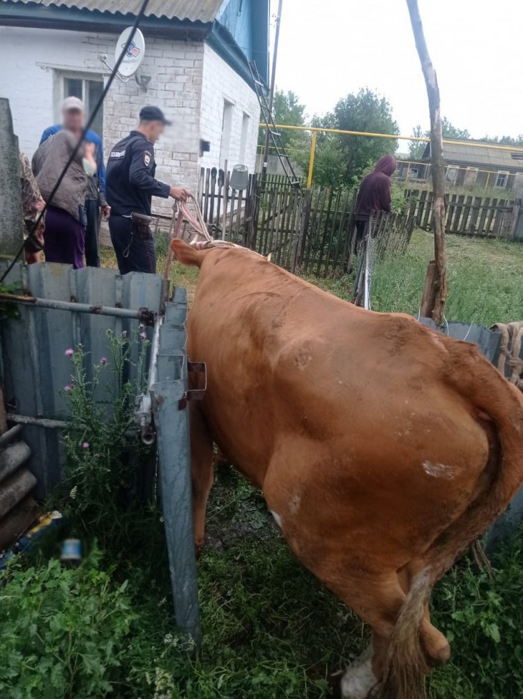 Местная жительница сообщила в полицию о том, что днем со свободного выпаса скота у нее пропала корова. Во время поисков правоохранители нашли ее - несчастное животное упало в погреб соседнего дома. Сотрудники полиции организовали спасение коровы и вернули ее хозяйке.