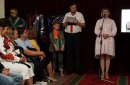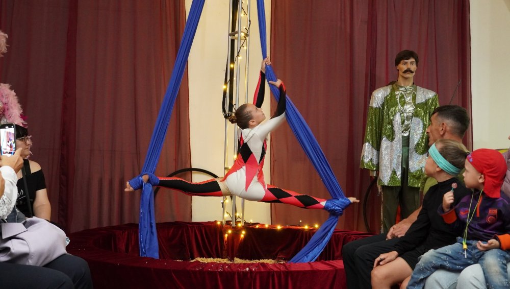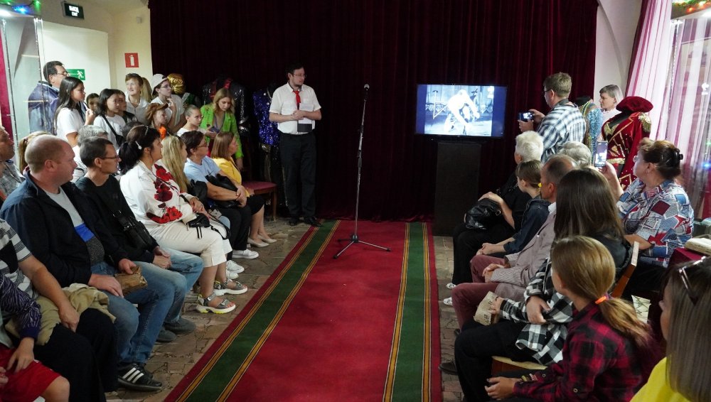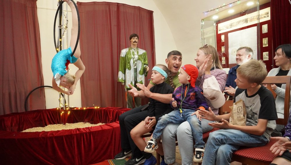 В день открытия выставки зал музея на время превратился в цирковой манеж. На входе всех посетителей угощали сладостями, а юные артисты студии «Сияние Феникса» исполнили для зрителей акробатические номера на кольце, полотне и кубе, рассказали в администрации города.