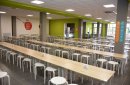 В здании – четыре блока. Первый включает в себя столовую, актовый зал, учебные классы. Во втором - спортивный зал с раздевалками, душевыми и санузлами, мастерские, тренажерный зал, кабинеты домоводства. В третьем блоке располагается медпункт, гардеробные для младших классов, кабинеты. В четвертом - центральный вестибюль с гардеробными, помещения групп продленного дня, библиотека.
