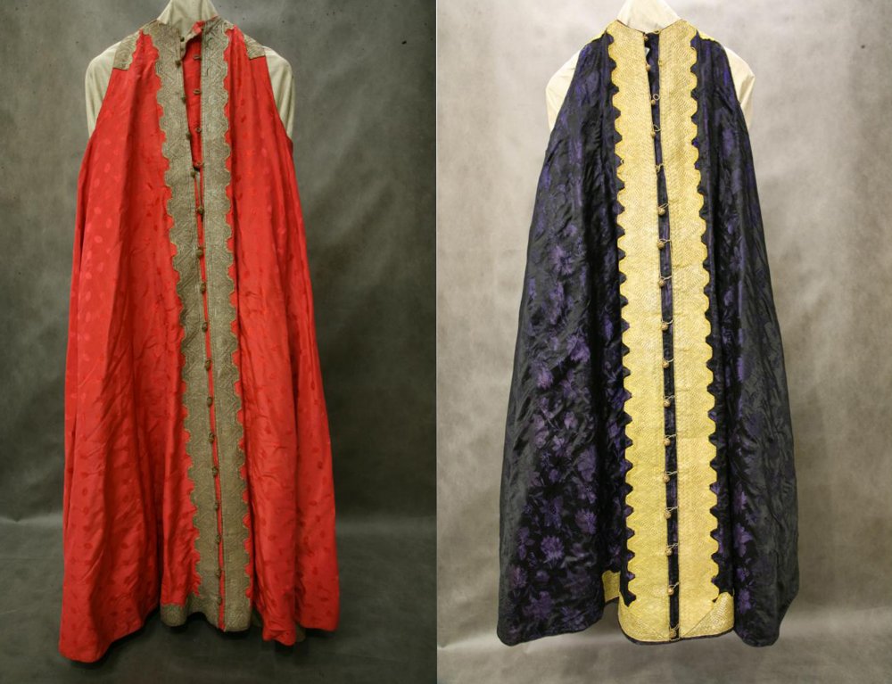 Сарафаны конца 19 – начала 20 веков сшиты из шелковой ткани «штофа» с узорной разработкой. Ширина по нижнему краю подола – 469 см. А рукава-рубаха является частью праздничного уральского костюма. Одежда сшита из полупарчи с узорной разработкой со стилизованным цветочным орнаментом. Рукава-рубаха украшена золотистой позументной тесьмой, ее подстава сшита из красного ситца с мелким рисунком.