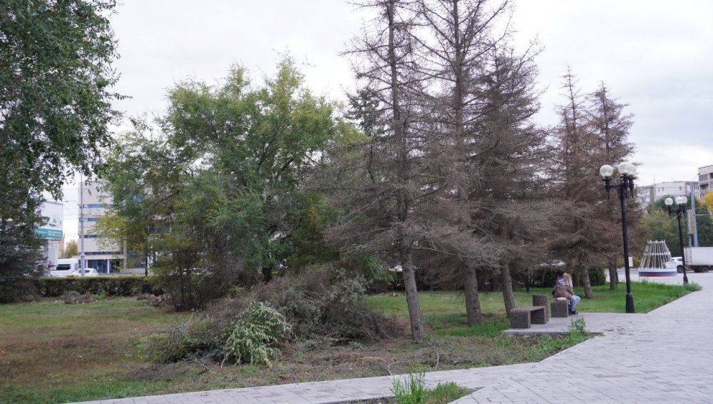В сквере имени Гагарина в Оренбурге началась реконструкция зеленых насаждений. По данным администрации, здесь запланирована частичная замена деревьев и кустарников с обновлением посадочного грунта.