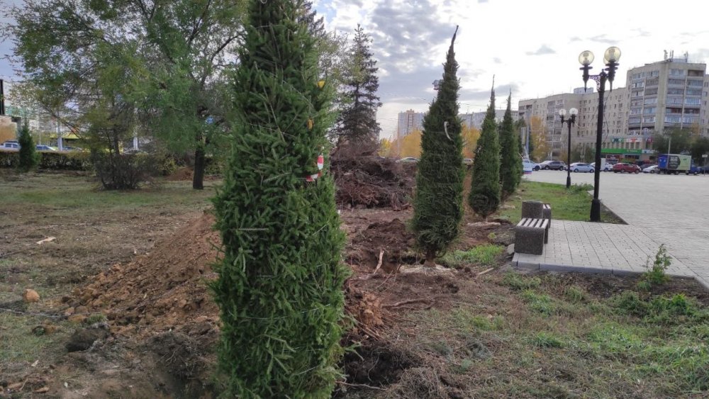 В сквере имени Гагарина Оренбурга началась высадка елей