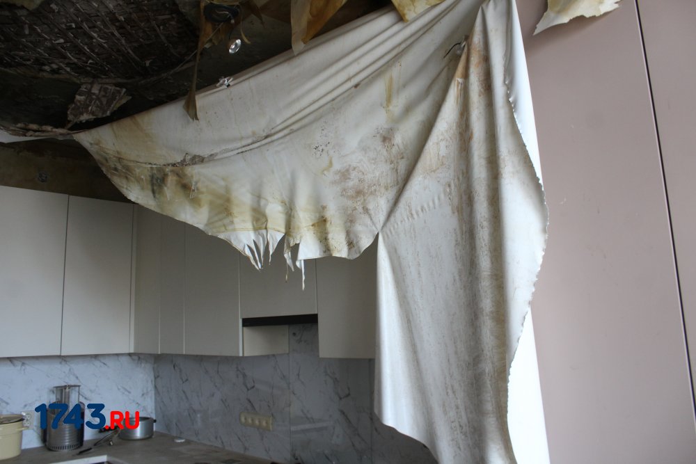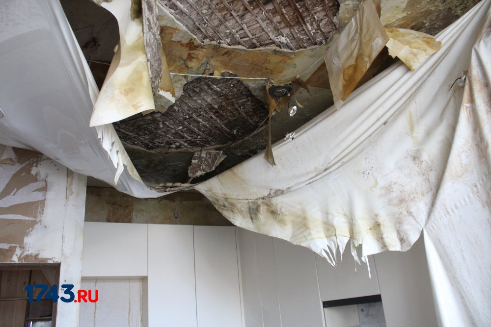 В некоторых квартирах потолки уже прогнулись и могут начать обрушаться в любой день.